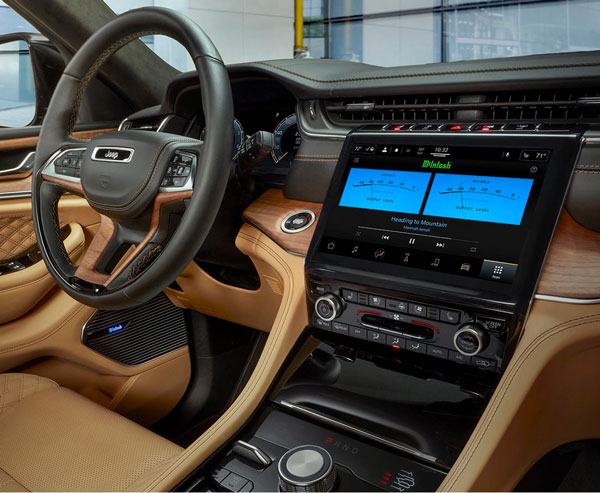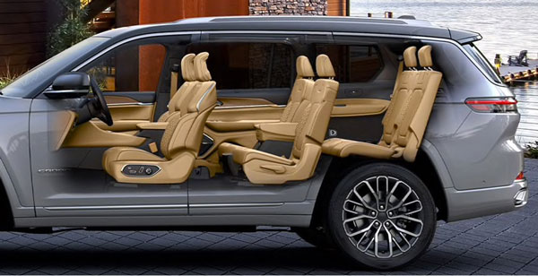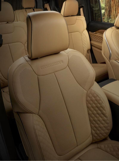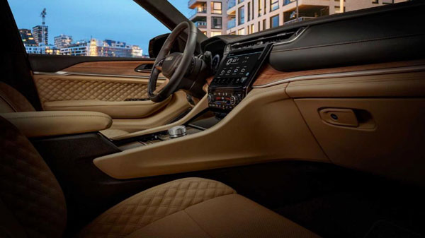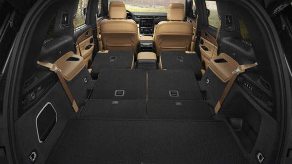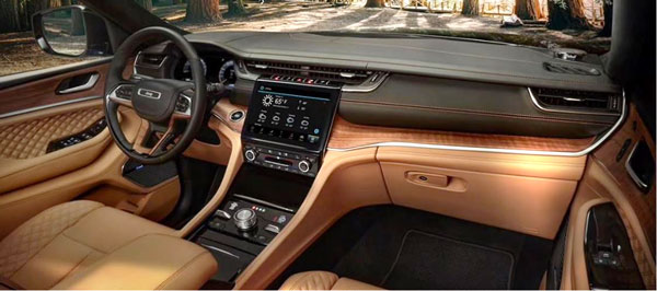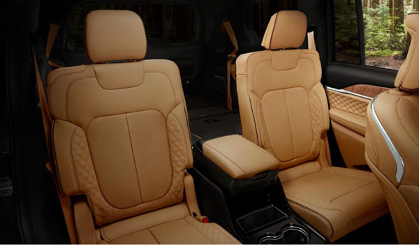 大切诺基的“双菱形”缝线和穿孔集成在第二和第三排座椅中均有应用,为内饰创造了更强烈的主题感