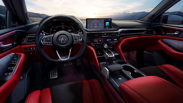 与大切诺基相比,MDX 的设计更关注驾驶员,且整体使用“柔软触感的皮革覆盖表面”。 通过在下表面使用大胆的颜色设计,将司机和乘员的空间分隔开来,创造出一种“驾驶舱”的环境感受。
