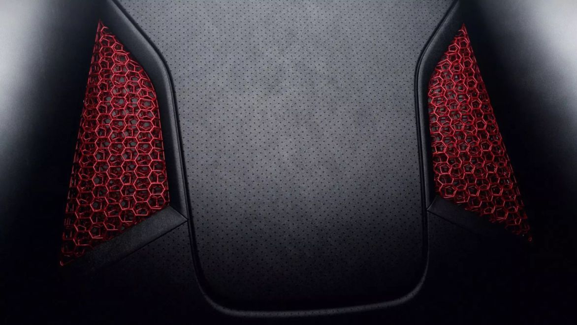 同样,座椅的外部可能由轨道就绪的防滑 Race-Tex 制成,但它的窗户状面板也显示了其 3D 打印格状内部的全彩色部分。