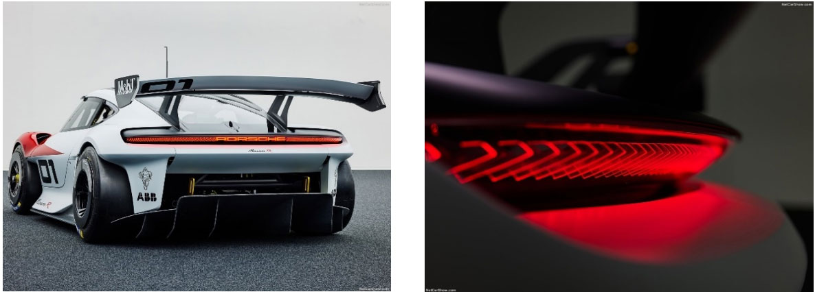 扁平的LED大灯极为显眼。四点式前灯源于Taycan电动跑车的大灯设计。
