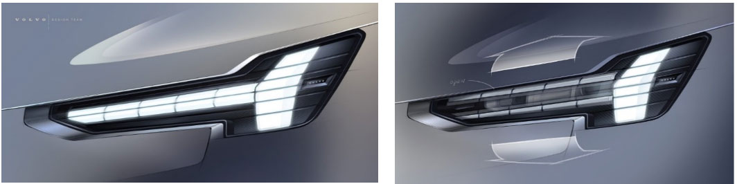由沃尔沃汽车照明设计、用户体验和研发团队开发,日行灯的水平部分可机械打开,露出主灯单元。不管白天黑夜,一直保持雷神之锤的造型。