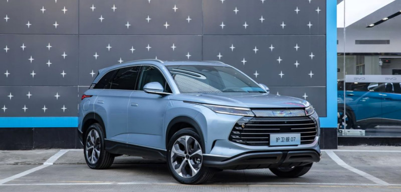 比亚迪护卫舰07定位于5座中型SUV,新车会搭载比亚迪引以为傲的DM-i及DM-p插电混动系统,NEDC纯电续航分别为100km、205km与175km。
