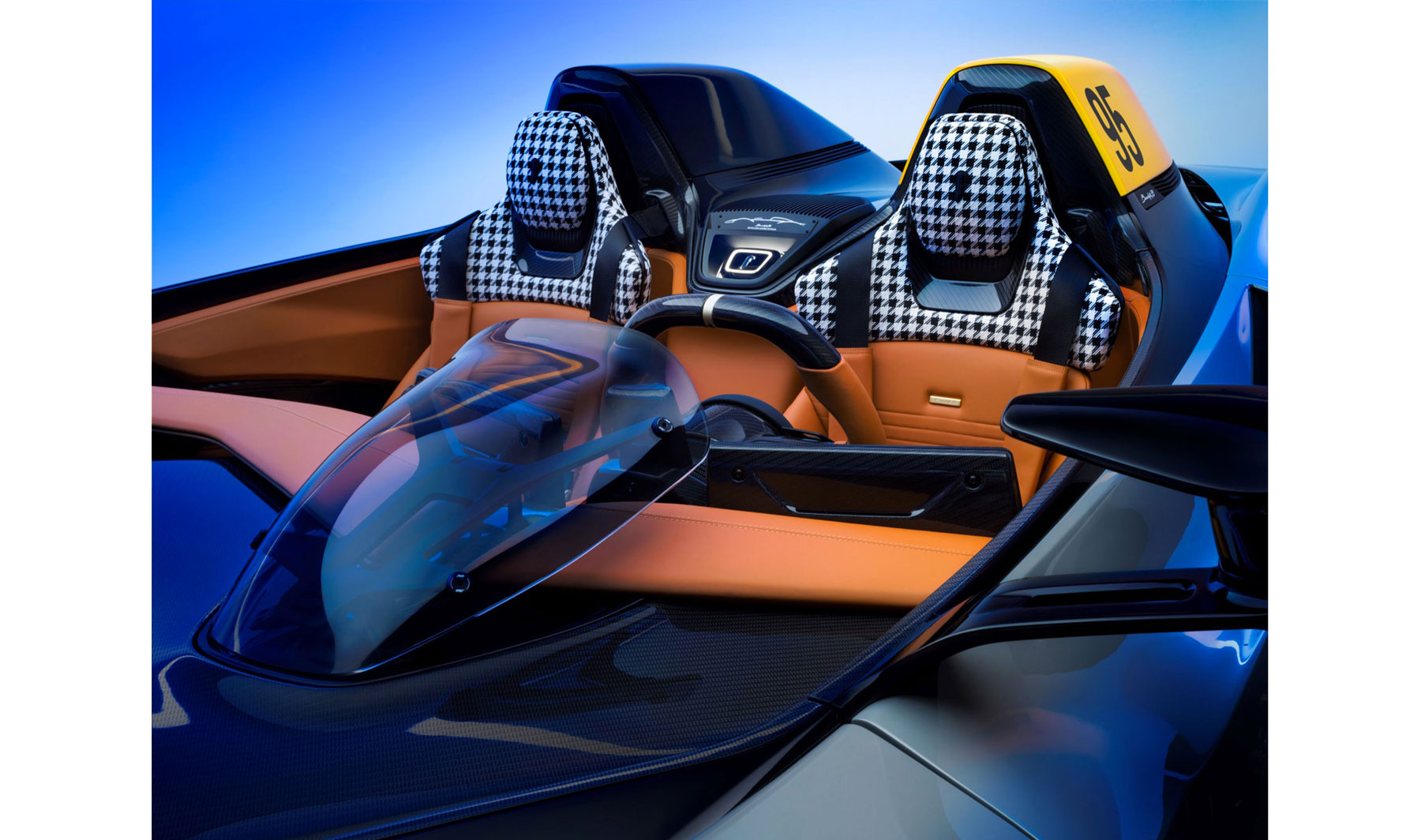 座椅也采用棕褐色可持续豪华皮革制成,灵感来自经典赛车的座椅,旨在围绕乘员弯曲。两个座椅都经过轮廓设计,以包裹驾驶员和乘客,确保舒适性和保护性,其两部分设计灵感来自 PURA Vision 中的座椅,并带有独特的铝嵌件。