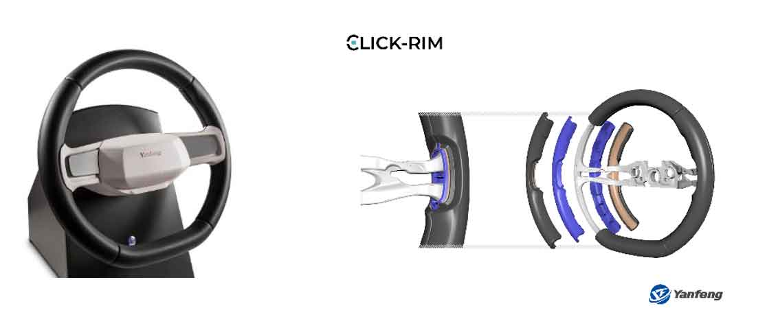 “ClickRim”是一个革命性的概念,一个模块化方向盘,根据延锋首席技术官Patrick Nebout和全球创新执行董事Jeff Stout的说法,其制造工艺可以“降低成本,确保产量并提高可回收性”。