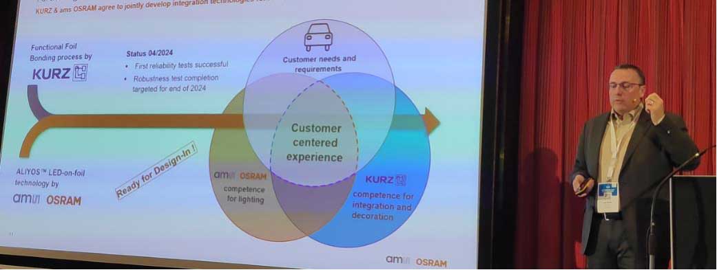 艾迈斯欧司朗和统明亮在DVN内饰研讨会上宣布了一项合作伙伴关系,旨在将艾迈斯欧司朗的开放系统协议(OSP)集成到统明亮为汽车环境照明量身定制的新一代智能RGB LED中。参阅上期新闻。
