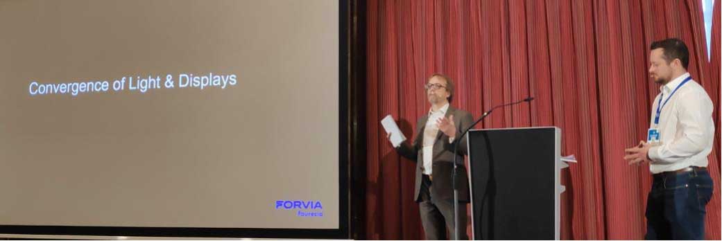 产品经理Tony Allson来自佛瑞亚Design LED,该公司专门从事汽车显示器和车内照明的 LED 光导解决方案,Jean-Baptiste Trolle 来自佛吉亚歌乐电子,该公司开发实用且令人向往的产品。两位嘉宾一起发表了关于“照明与显示器融合”的演讲。