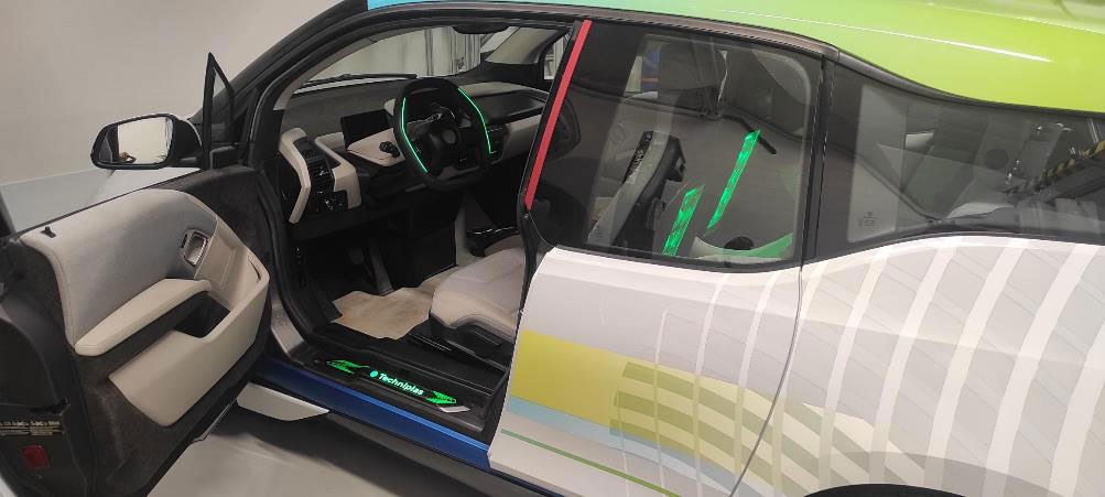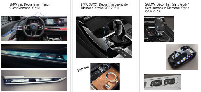 在汽车内饰中实施的 ColorFuse 技术和玻璃/金刚石光学器件的串行应用示例。