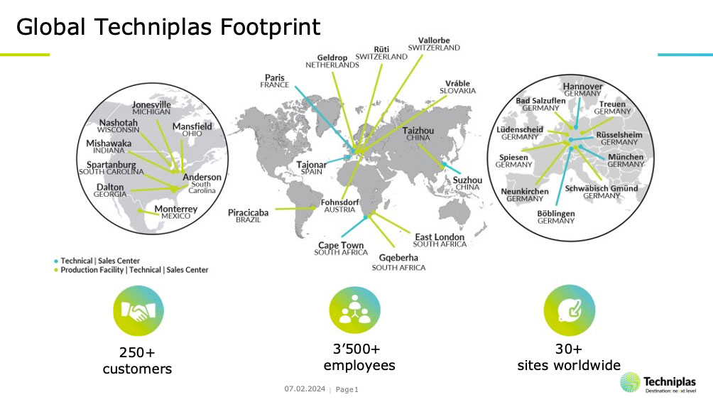 Techniplas 集团成立于 2009 年。Techniplas International 总部位于瑞士吕蒂,Techniplas North America 总部位于威斯康星州 Nashotah。
