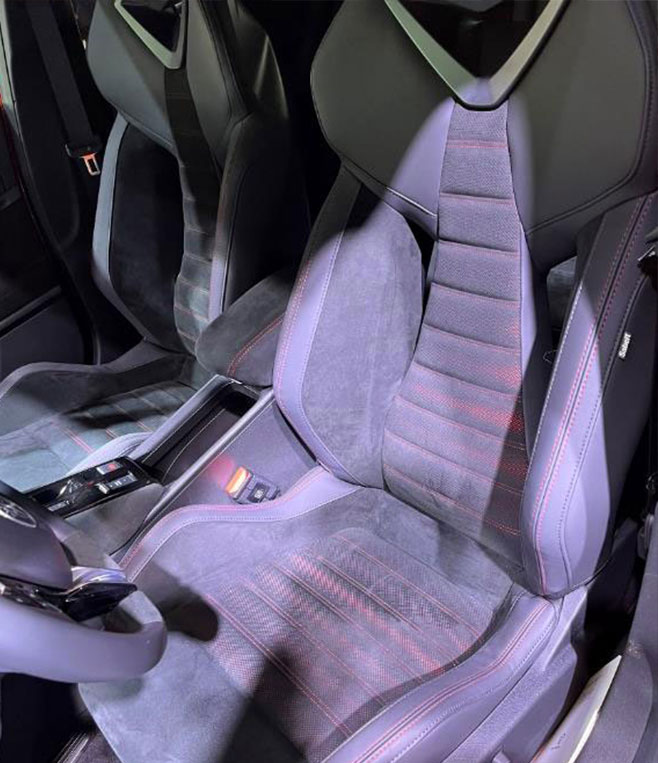 所展示的车型具有 10.25 英寸触摸屏和高度可调的高级座椅。
