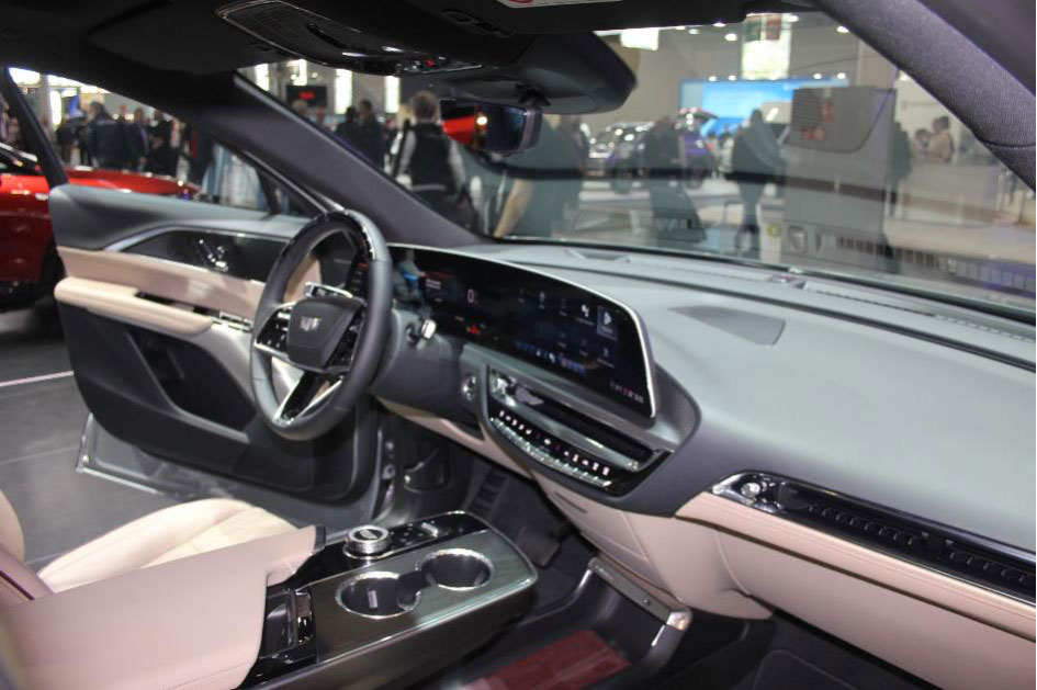 凯迪拉克展示了 Lyriq 和 Optiq。内饰方面,33 英寸的大型数字面板让人印象深刻。它集成了仪表和多媒体系统。表面处理非常好,具有增强的材料和讨人喜欢的细节,如圆柱形变速杆。