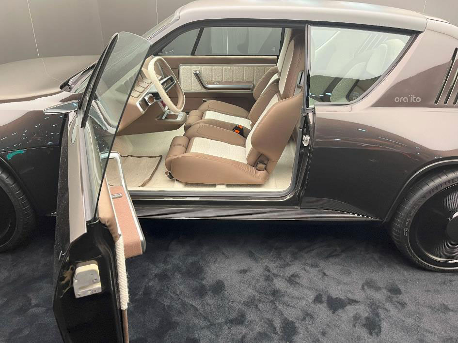 R17 拥有真正旅行车的所有内饰特征,包括其特定的驾驶位置、舒适的座椅、全套设备和一丝不苟的饰面。restomod 版本保持了原来的舒适标准,同时对仪表板和中控台进行了一些更改。座椅围绕原来的 “花瓣 ”结构进行了重新设计,新的内饰灵感来自室内设计世界:棕色面料采用优质美利奴羊毛混纺缎面,米色面料采用精致轻盈的羊毛珠皮呢,既长又厚。作为一款现代汽车,R17 electric restomod x Ora Ïto 配备了一个带有当前雷诺图形环境的中央屏幕和方向盘后面的四个小几何屏幕,其灵感来自原始模型的表盘。