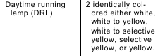 在美国,选择性黄色明确允许用于日间行车灯(DRL),如 FMVSS 108 表 Ia 所示: