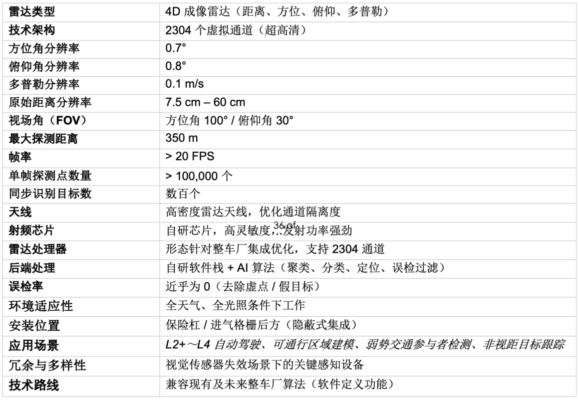 Phoenix 雷达凭借无与伦比的通道密度、超高角度与多普勒分辨率、超大点云容量(单帧超 10 万个点)脱颖而出,定位于高端 4D 成像雷达,覆盖 L2 + 至 L4 级自动驾驶,重点聚焦安全性、环境适应性与车规级适配性。