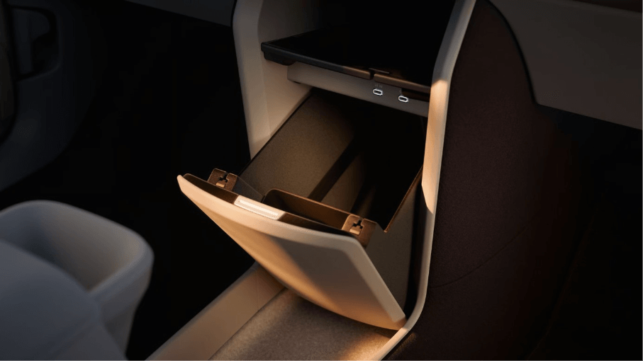取消传统手套箱可扩大膝部空间,同时提升碰撞安全性能。