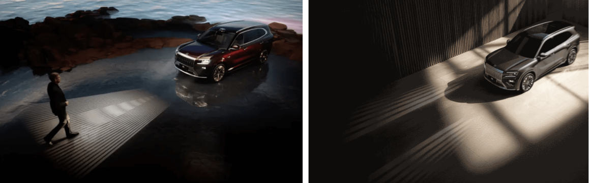 中国对于道路投影的法规相对更灵活,这让整车厂商可以更自由地在路面上投射提示标识。极氪已正式公布了其中部分功能。