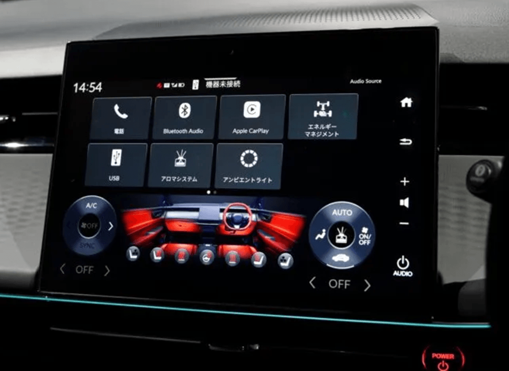 座舱交互界面以超大尺寸抬头显示为核心,搭配窄型液晶仪表与椭圆形方向盘。中控台配备12.8英寸超大中控屏。