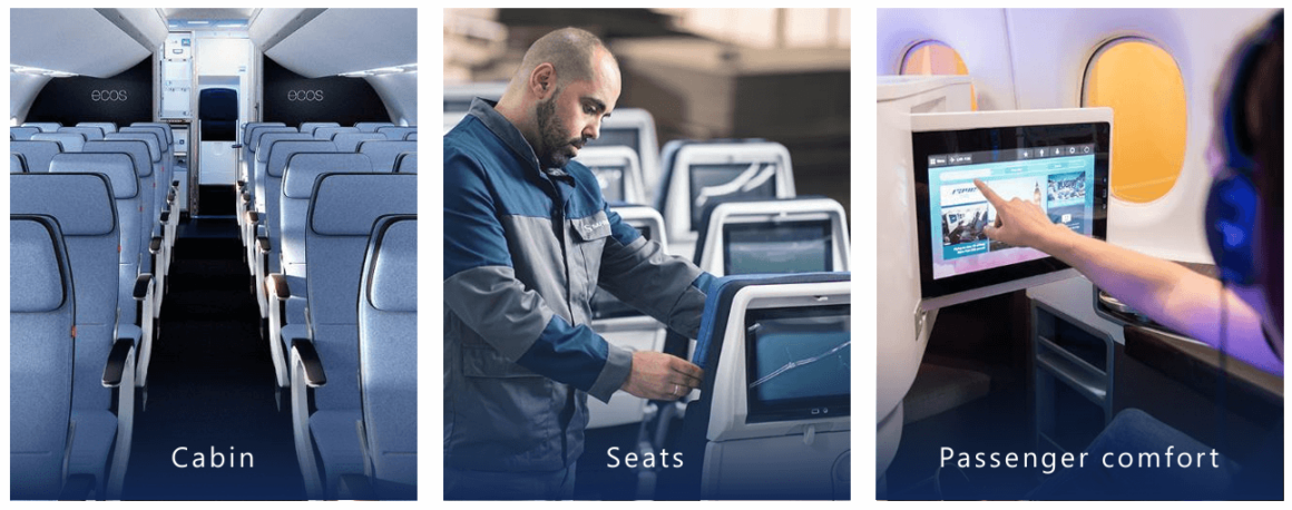 赛峰在以下领域位居全球首位:窄体商用航空发动机(与通用电气合作)、直升机涡轮发动机、起落架、机轮及碳刹车系统(适用于100座以上干线商用飞机)、飞机线缆、逃生滑梯、供氧系统;同时在射频传感器空间监测、卫星轨道维持与深空探测器控制用调制解调器、高性能航天光学器件、飞机水污管理系统等领域实力突出。而更值得DVN社群关注的是,赛峰还深耕支线飞机与公务机的内饰业务。
