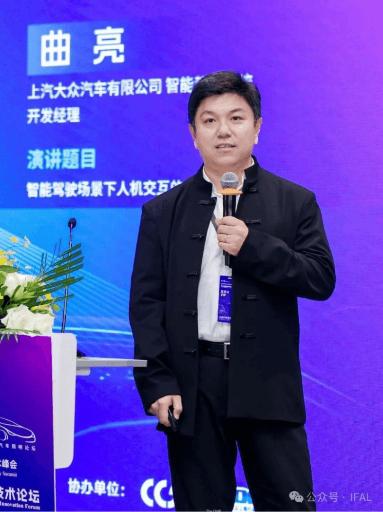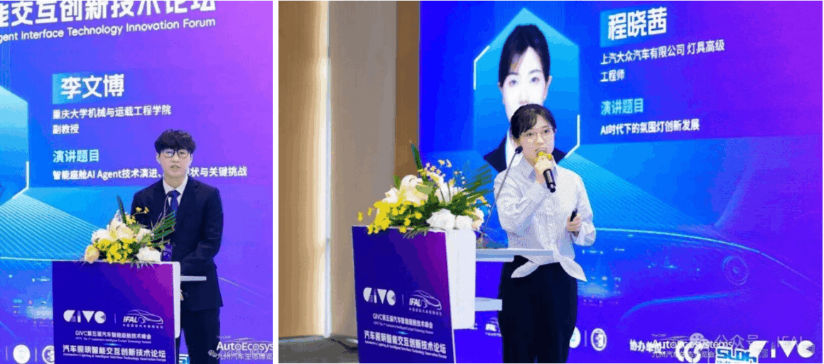 来自重庆大学李文博副教授团队的李心愿博士 分享了智能座舱AI Agent的演进路径,强调未来的车灯控制将融入大模型决策中枢,实现从机械的“指令执行”向深度的“意图理解”质变,让灯光系统能主动适应用户需求。在此基础上, 华域视觉软件分中心的贾书曼 展示了“AI驱动的场景引擎”,该技术让车灯摆脱了预设脚本的束缚,能够根据天气、路况甚至用户情绪实时生成动态氛围,实现了从迎宾礼遇到地面投影游戏的“千人千面”个性化表达。与此同时, 上汽大众氛围灯团队的程晓茜 进一步探讨了AI时代氛围灯的创新方向,她强调光作为环境模态应具备“无感交互”的特质,在营造美学氛围的同时,利用呼吸灯语等微妙变化传递关键信息,在不打扰驾驶员的前提下校准人机信任。