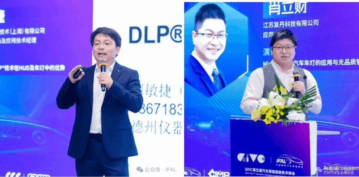 歌尔光学车灯产品线袁学成总监在剖析车灯智能化演进路径时指出,产业生态重构的关键在于软硬件解耦,这将推动车灯从单一功能件向智能终端转型。为了真正落地“软件定义车灯(SDV)”,来自统明亮的市场总监Lim Yong Yiaw 展示了seddLED与LiAS网络架构,该方案通过高速以太网实现像素级精准控光并支持OTA升级,为动态交互奠定了灵活的硬件底座。在显示技术的前沿阵地, 德州仪器中国区应用技术经理周敏捷深入解读了新国标下的DLP技术优势,数据显示其在耐阳光倒灌、亮度及对比度等核心指标上大幅超越标准要求,使其成为AR-HUD及百万级像素大灯高精度交互的首选。针对Micro LED的量产瓶颈, 江苏复丹的高级光学工程师肖立财提出了涵盖巨量转移良率提升与色度一致性管控的全流程解决方案,利用数字孪生与自动化检测加速其商业化进程。