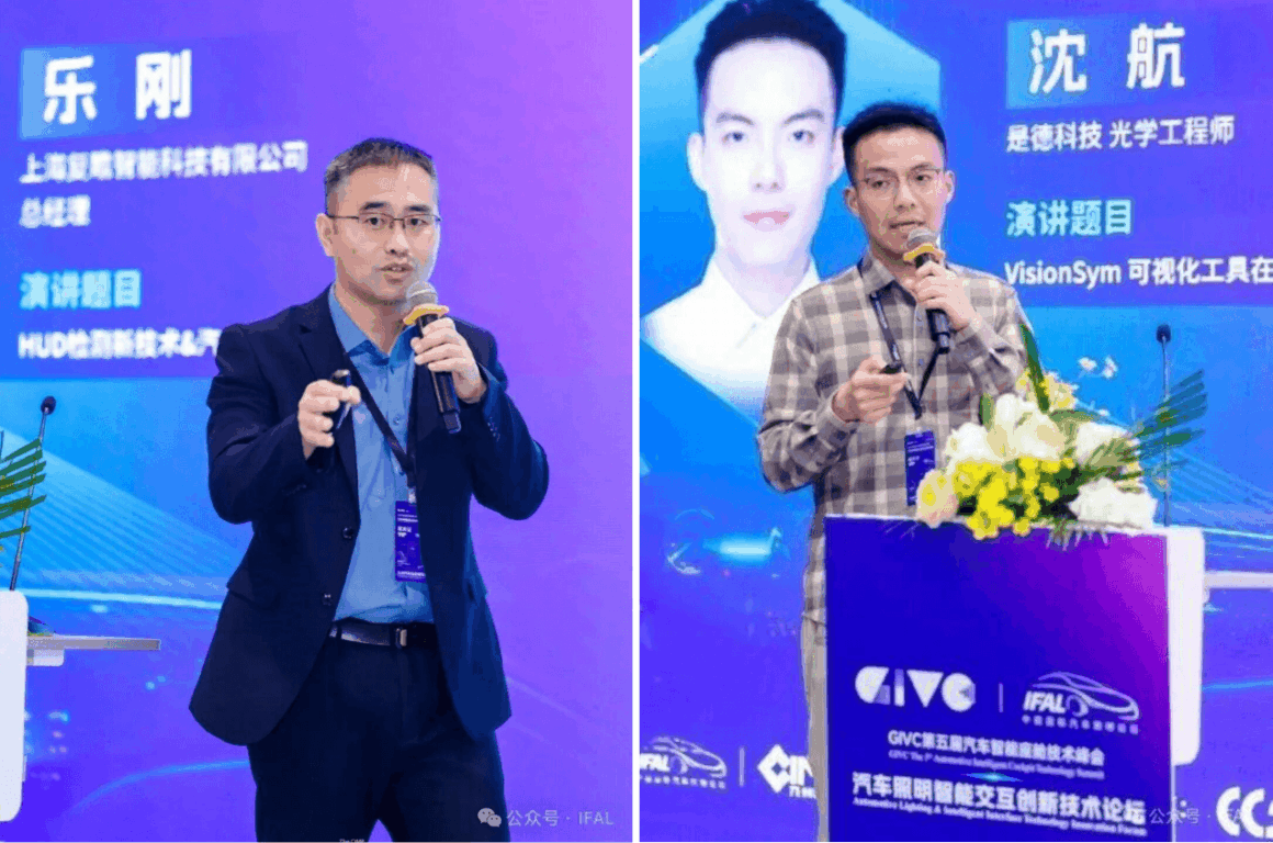面对后装市场及多车型共线生产的适配痛点, 上海复瞻的总经理乐刚展示了高柔性HUD检测方案,有效解决了多车型适配的难题。而在设计验证环节, 是德科技的应用工程师沈航介绍了VisionSym可视化工具,该工具实现了从光学设计到物理级写实渲染的无缝闭环,成功将原型验证周期从数月压缩至分钟级,极大提升了行业的创新迭代效率。