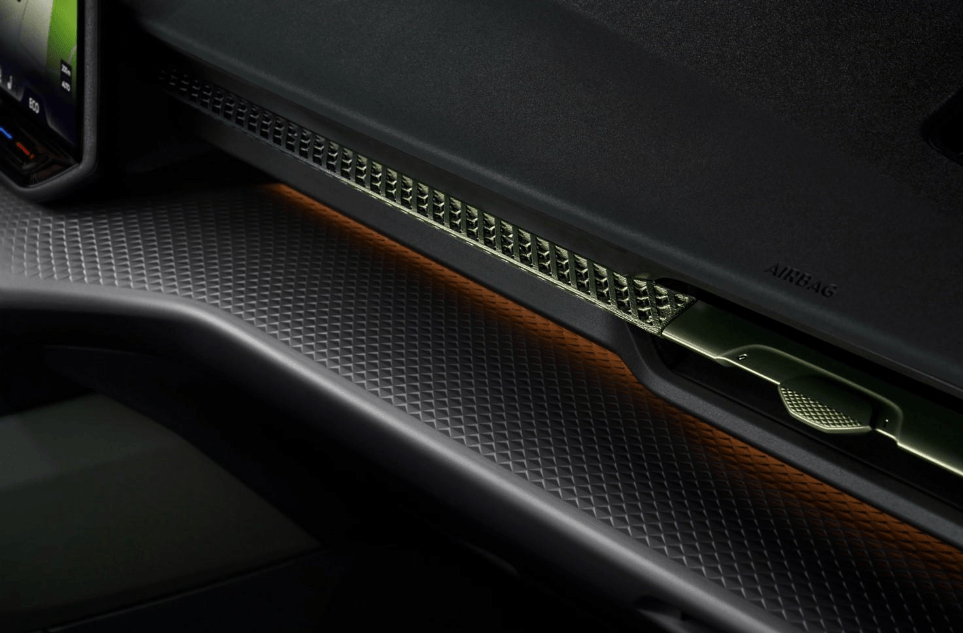 一台无缝集成在仪表板内的投影仪,可向车门面板投射可定制的动态图形,让照明效果突破传统饰板边界,实现全域延伸。