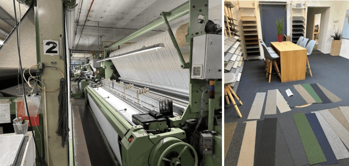 艺格是欧洲最大的地毯生产商之一,每周地毯产量约 12 万平方米,年产量达 500 万平方米。企业高度重视可持续发展,已大量使用海洋塑料、再生材料、可再生天然羊毛等再造原料。他们还会回收使用过的方块地毯(有些已使用 20 年),经清洁处理后恢复到近乎全新的状态,再作为近零碳排放产品重新销售,目前在建筑师群体中颇受欢迎。