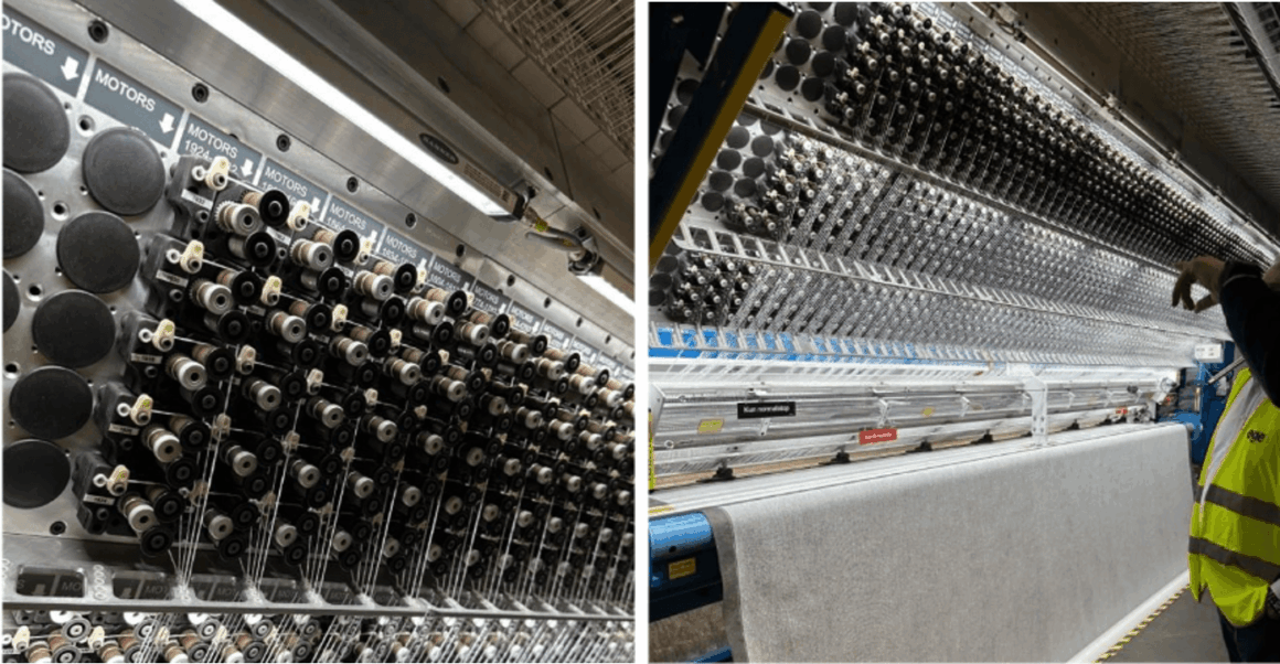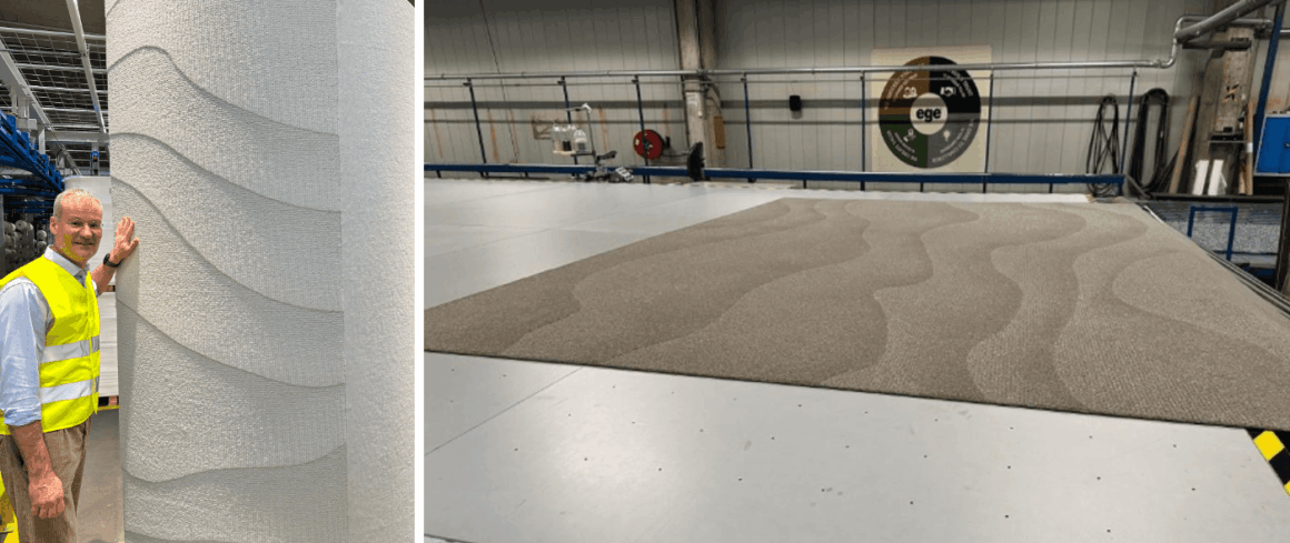 艺格已引进一台大型平织地毯专用织机,搭载提花织造技术,可通过控制单根纱线实现图案定制。该设备可容纳至多 2550 根纱线,能够连续生产宽度达 4 米的地毯。