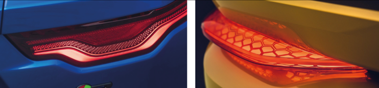 2. Scuptural rear lamps or Perfect homogeneous rear lamp