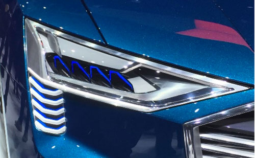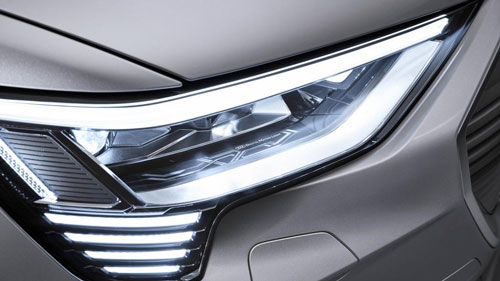 With their digital matrix LED headlights, Audi presents a worldwide first in a production vehicle, specifically their e-Tron Sportback.