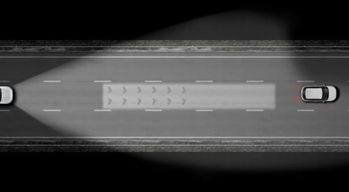 The marking light function is also used in conjunction with the optional night vision assist. The light automatically draws attention to any pedestrians it detects, thereby reducing the danger of overlooking pedestrians in the immediate vicinity of the lane.