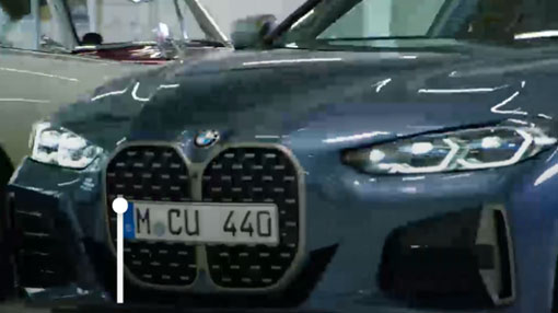 LED headlamps are standard equipment with particularly fine contours; laser high beam boost is available as an option. The DRLs take a fish hook shape accented by a central light dot suggestive of focused eyes.