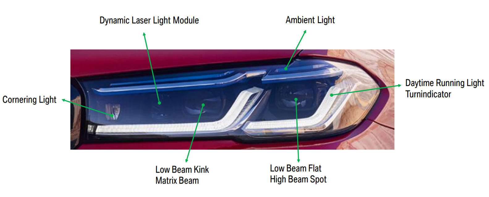 To be retained: BMW developshere a different concept for ADB, no DMD or microLED but swiveling laser module, with vertical cutoff.