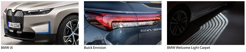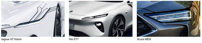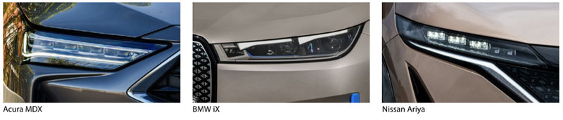 Stylists are insisting on ultra small headlamps, forcing engineers to find solutions for sufficient light performance. LED and laser light sources and new optical techniques unlocked by new materials are making it possible for headlamps to be vanishingly thin. Examples include the Acura, BMW iX, DS4 , Genesis GV70, Infiniti QX55, and Nissan Ariya (optic modules just 2 cm high!)