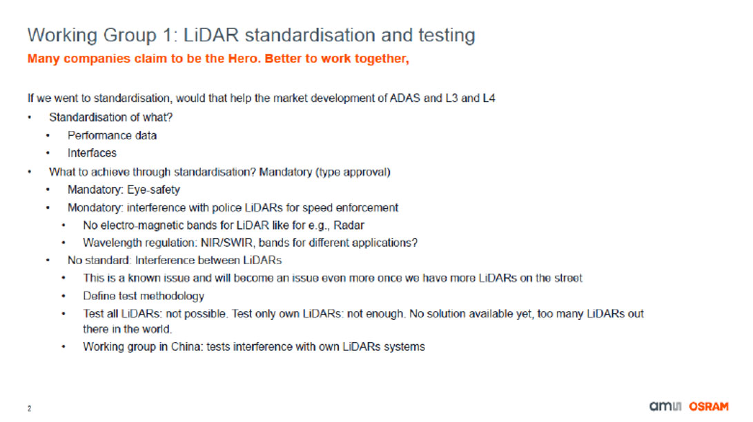 WG1: Can standardisation and testing support market development of lidar for ADAS and L3-4 ?