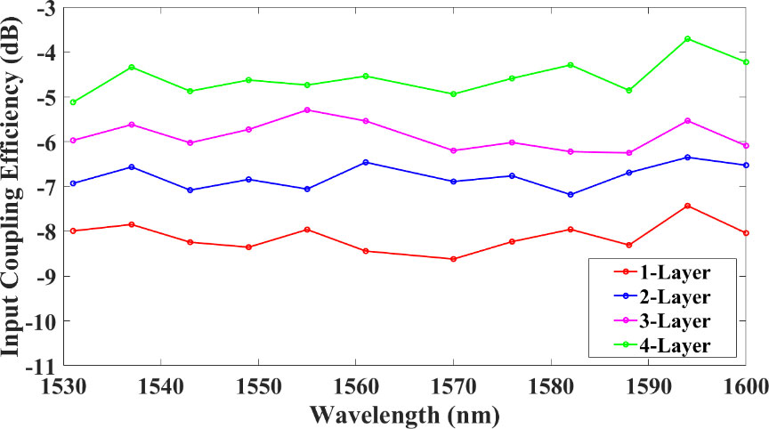 These encouraging results confirm the expectation that with multiple waveguide layers the coupling efficiency can be significantly improved.