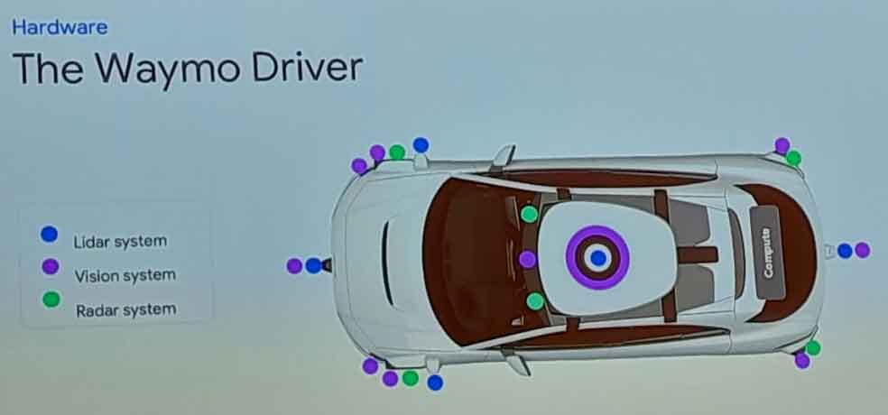 - Waymo relies on camera, radar and lidar technologies to achieve a robust L4 feature and to optimize the ODD (Operational Design Domain), covering many environmental and road conditions.