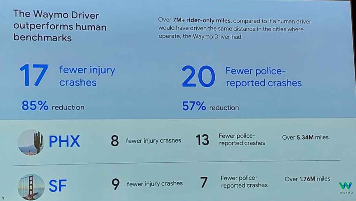 - After over 7 million customer rides, the Waymo Drive has a good safety record and allows to reduce, in theory, the number of crashes by 85 per cent.