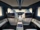 The cabin boasts 88 per cent soft-touch materials, with color options in purple or grey, featuring cloud-textured leather and chrome accents.