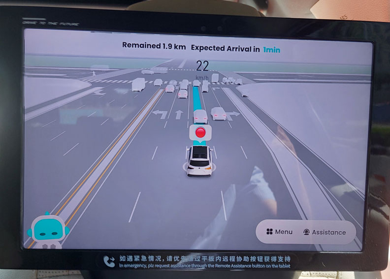 We had a tour in a robotaxi deployed by Pony.ai, a Baidu challenger who has 270 robotaxis in use in cities. The travel seemed smooth and safe, showing a good level of maturity of the technology and HMI. Pony says they will operate 1,000 robotaxis by the end of 2025.