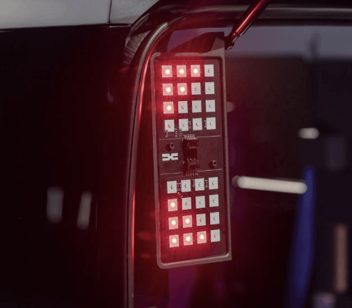 For the rear lamps, Dacia propose a PCB with LEDs on – without any optical system, bezel, or outer lens. The vehicle’s backglass protects the lamp when the tailgate is closed.