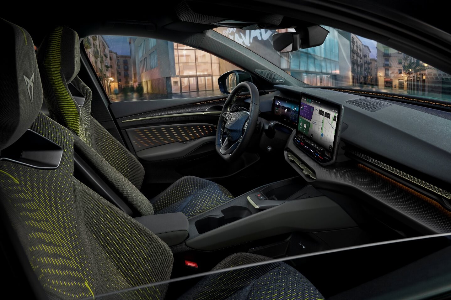 What interests me about the Raval is the way Cupra handles the UX without adding yet another screen. The 10.25-inch Digital Cockpit, the 12.9-inch central display, the ‘cave’ of the instrument cluster that subtly puts the driver back at the centre, the parametric patterns that capture and diffract light, and above all the Smart Light Next Generation that transforms the lighting into a layer of information between the car and its driver. Add to that seven lighting themes, dynamic projections on the doors and 3D-knitted CUP Bucket seats, and it becomes clear that at Cupra, emotion is the architecture of the product.