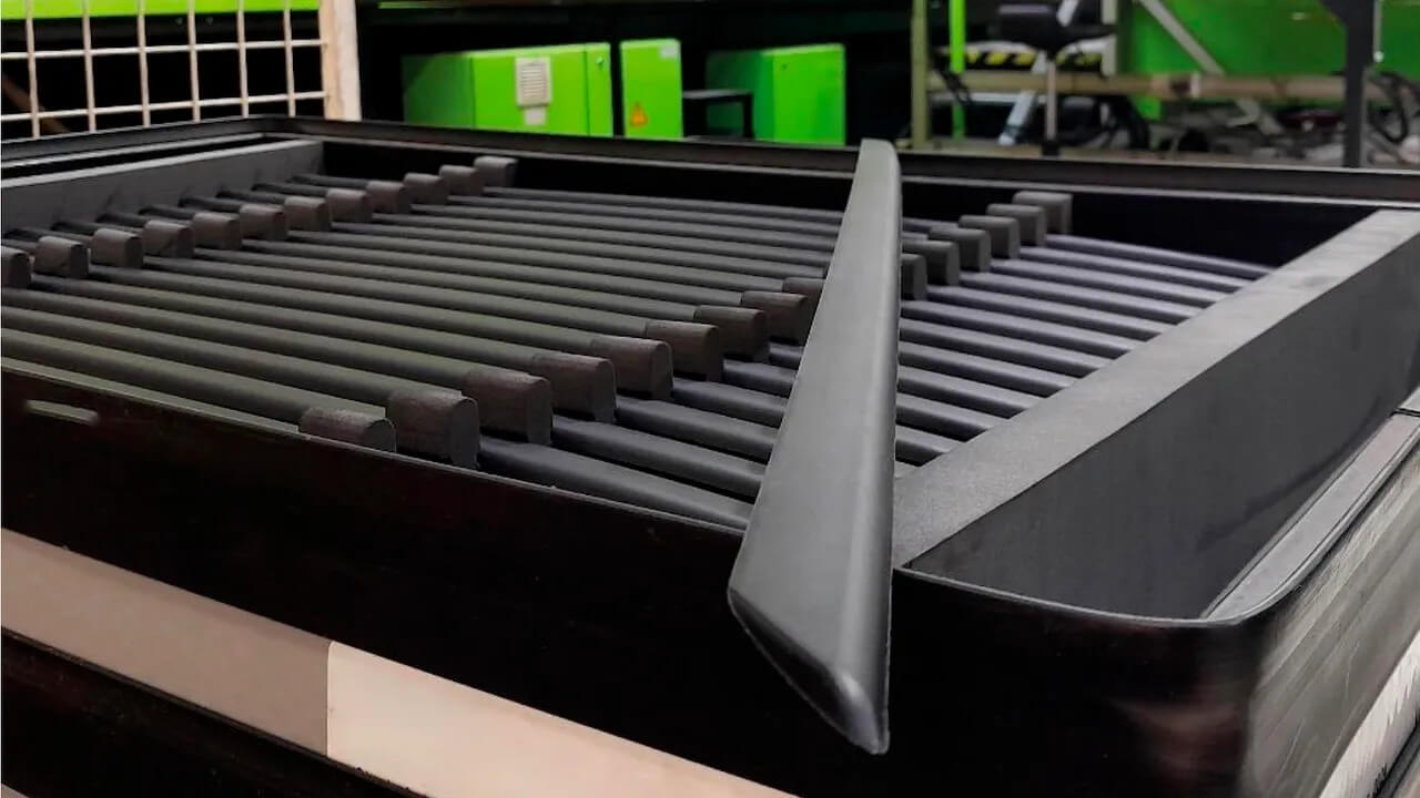 The work was carried out with SaarGummi, and the resulting compound is described as reaching roughly 56% recycled content while also reducing the product carbon footprint versus the previous variant. This is not an image-driven CMF material; it targets a high-volume function with process constraints and durability expectations.