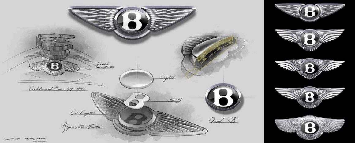 Retaining the iconic wing design, it turns the feathers into illuminated crystal shards. Here is a sketch by designer Young Kwang Nam. For those who marvel a bit longer at the emblem, it reveals its subtle asymmetry, referencing the original feathers. The new emblem design, launched on the EXP15, marks the new era of Bentley’s design philosophy, defined by the magical fusion of light and craftsmanship.